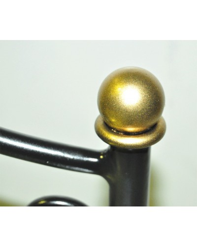 Mesita de noche en forja ref.101249, sencilla mesita con cuatro barrotes de hierro macizo, terminados en una bola de  bronce, mas una balda de cristal.