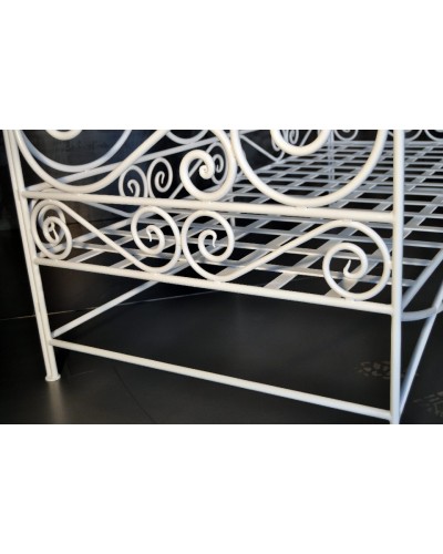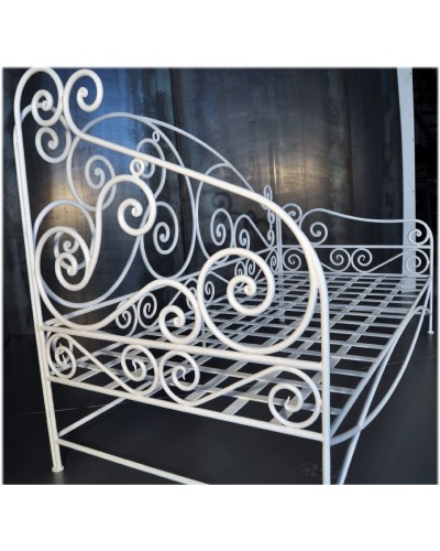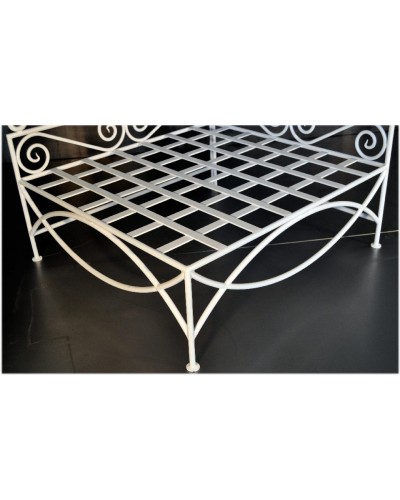 Sillón y sofá de forja ref.100970 con caracoles en los laterales y asiento de pletinas entrecruzadas. Todo elaborado artesanalmente en hierro forjado, cojines opcional.