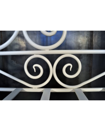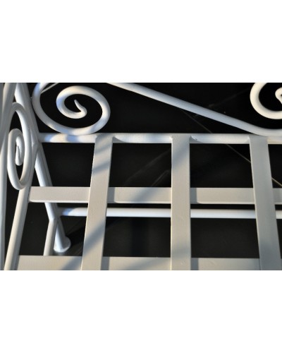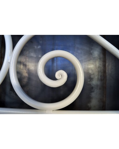 Sillón y sofá de forja ref.100970 con caracoles en los laterales y asiento de pletinas entrecruzadas.