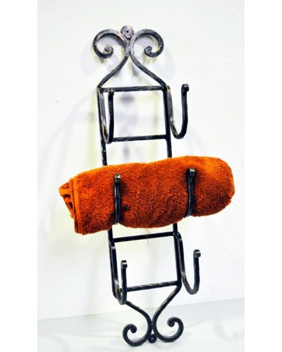 Toallero de forja ref: 101196. Elaborado con barrotes de hierro macizo, con tres compartimentos para las toallas.